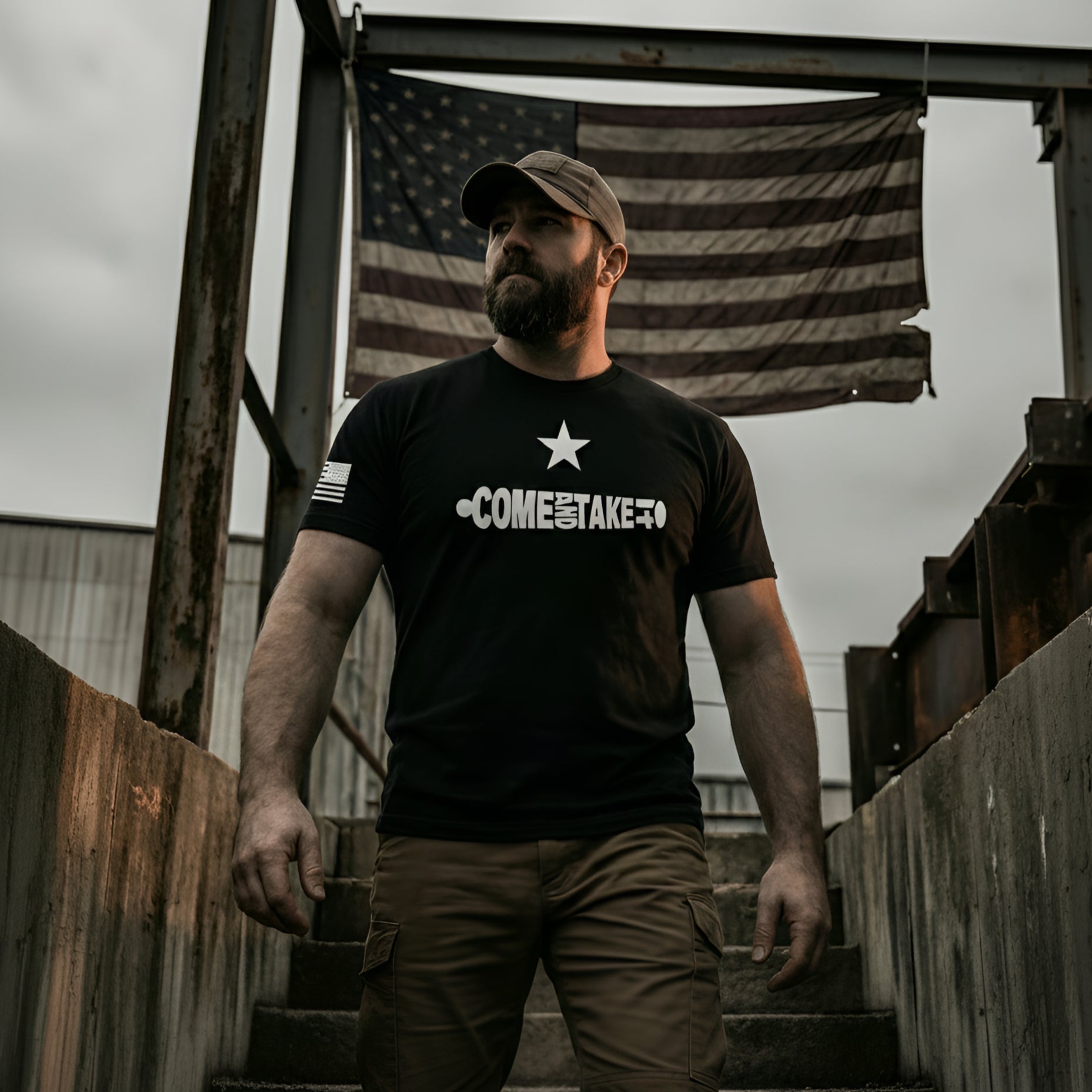 The Come and Take It Cannon Shirt delivers a modern take on one of America’s most enduring symbols of defiance, liberty, and heritage. Inspired by the historic 1835 Gonzales Flag, where Texian settlers refused to surrender their cannon and boldly declared “Come and Take It,” this design honors the same spirit of courage and conviction that helped shape our nation. The graphic keeps the traditional Lone Star while reimagining the cannon using the words COME AND TAKE IT to create the silhouette of the iconic cannon, giving this patriotic tee a fresh, contemporary look.